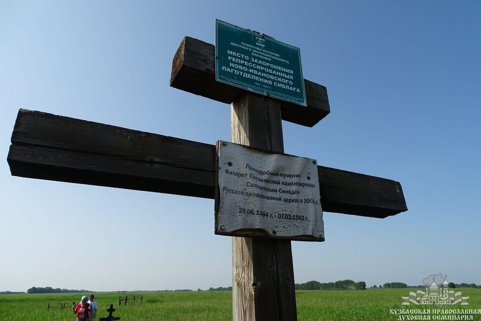Далее группа посетила пос. Новоивановский, где установлен памятный крест на месте захоронения заключенных Новоивановского отделения Сиблага. Здесь отбывали заключение и приняли мученическую кончину преподобномученик игумен Филарет (Пряхин), священномученик архиепископ Павлин (Крошечкин), священномученик иерей Анатолий Левицкий, священномученик епископ Аркадий (Ершов) и другие священнослужители и миряне, оставшиеся верными Христу до самой смерти.