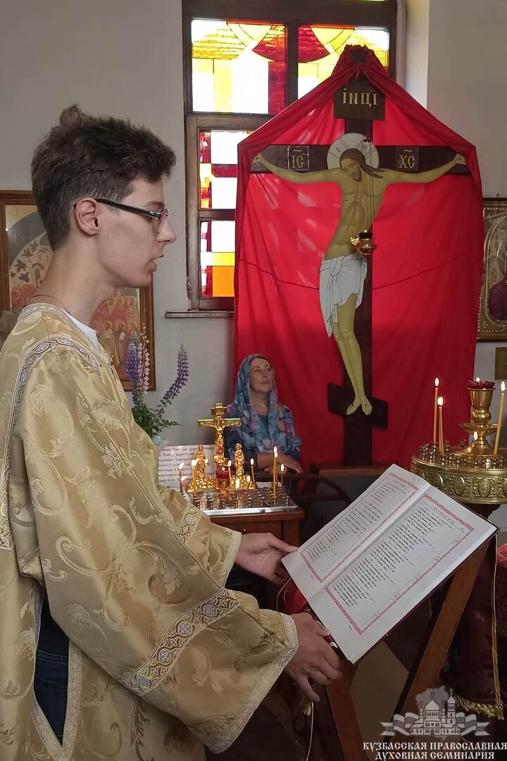 Паломничество началось с общей молитвы в храме святой равноапостольной княгини Ольги в пос. Калачево, где старший тьютор КПДС иерей Дмитрий Востриков в сослужении делопроизводителя семинарии диакона Кирилла Мальцева совершили молебен на начало всякого благого дела.